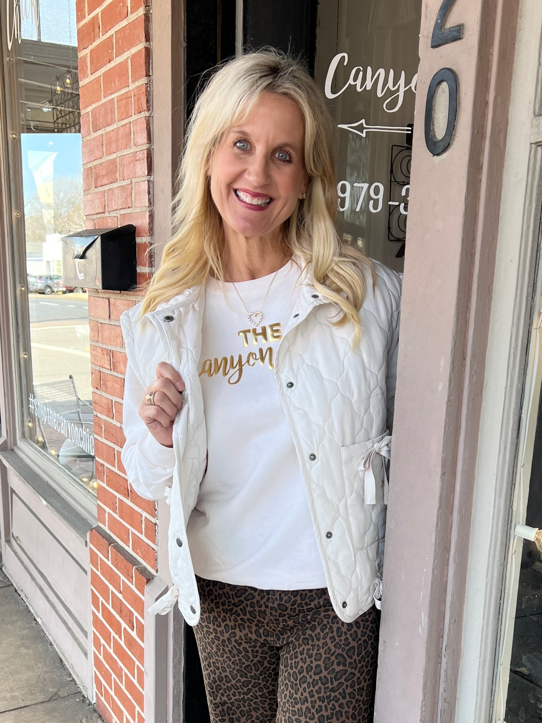 Check out our new TCC Gold custom sweatshirt with magic puff THE CANYON CHICK stacked graphic: stay warm and rep your favorite boutique!