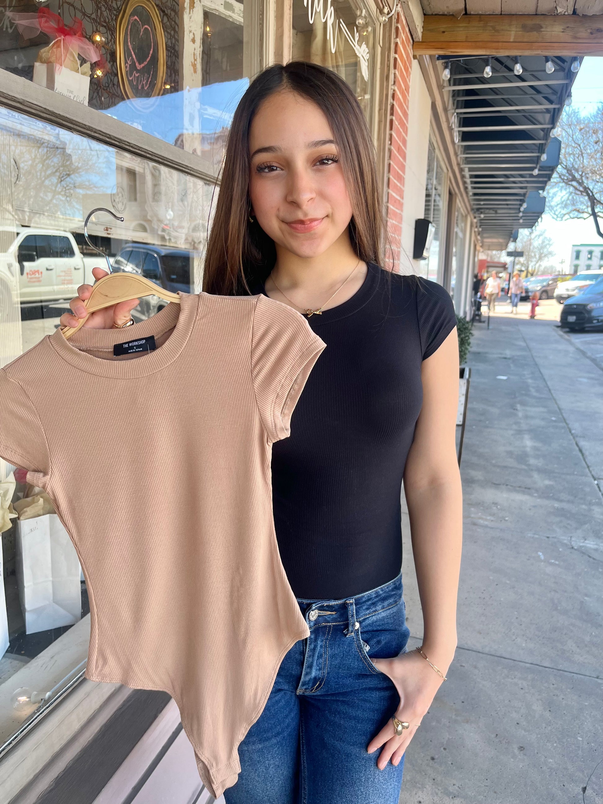 Elevate your wardrobe with the Bodysuit Basic, a must-have staple in classic black and tan. Its versatile design allows for effortless styling, making it perfect for layering or wearing solo. Enjoy the comfort and simplicity of this essential piece that fits seamlessly into any outfit!
