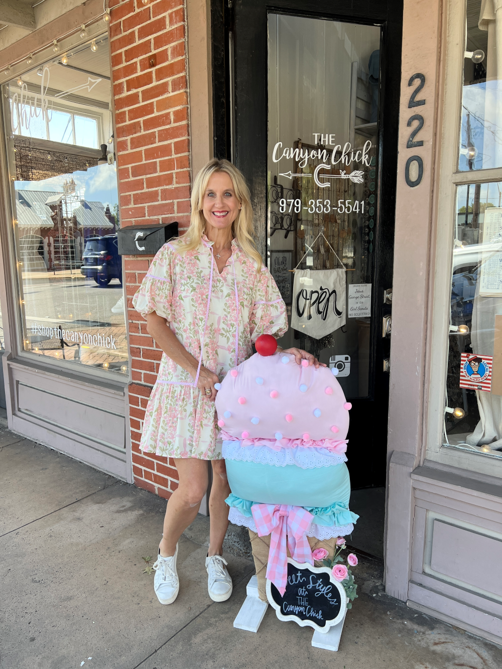 The Floral Breeze baby doll dress in soft pink or light blue features a charming floral print, puffed sleeves, and delicate ruffle details. The playful tie-up neckline is accented with twisted cords, adding a whimsical touch to your look.