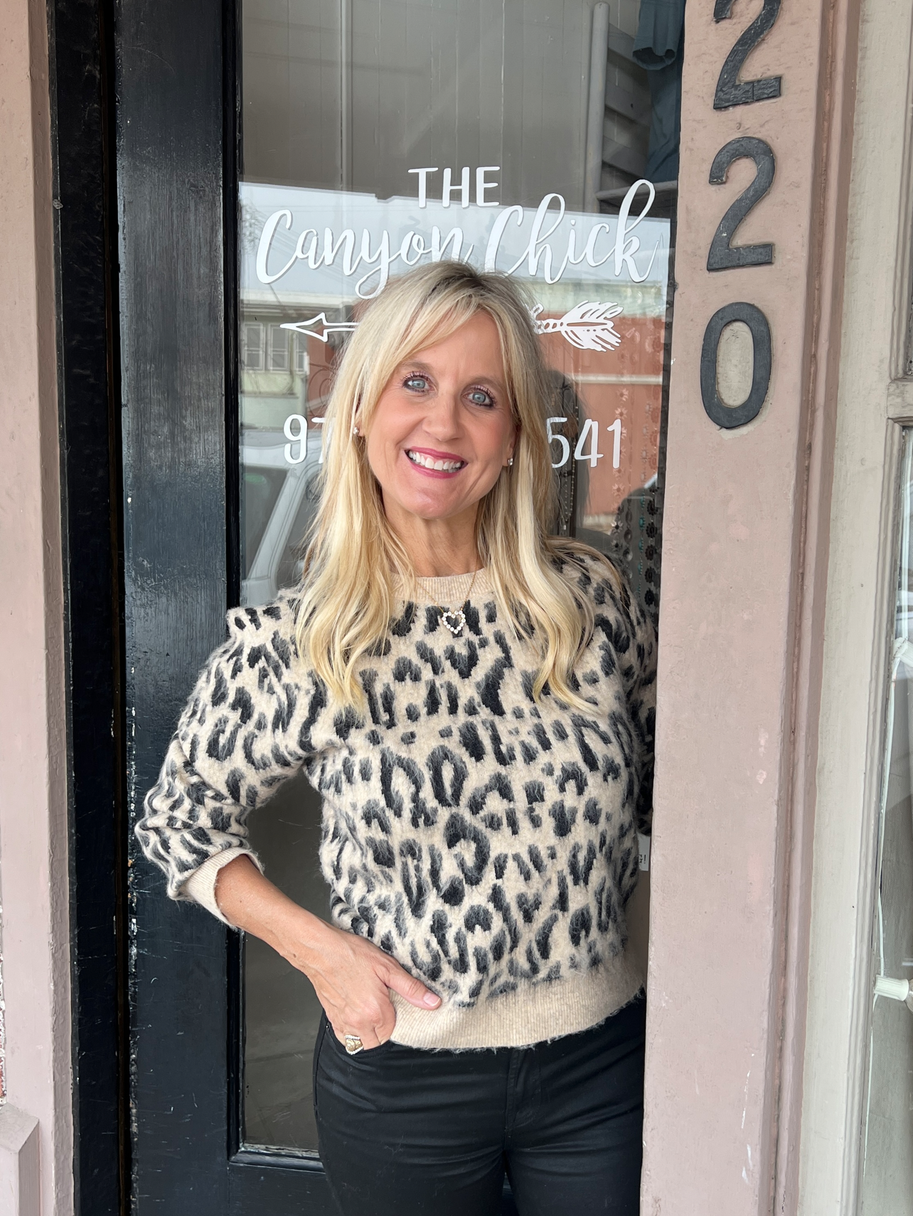 You know we love leopard here at TCC! The Mina sweater checks all the boxes. The leopard print round neck, long sleeves and perfect length make for a classic sweater that you will wear for many seasons ahead. Look stylish and stay warm on those cold Texas days.
