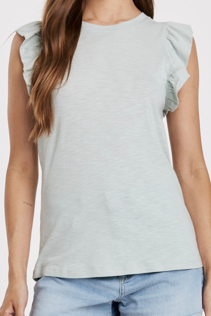 Step out in style with the North ruffle trimmed sleeve tank! This lightweight top is available in a variety of colors. It looks great no matter the occasion. With oh-so-cute ruffle detailing, it's no wonder this tank is all the rage!