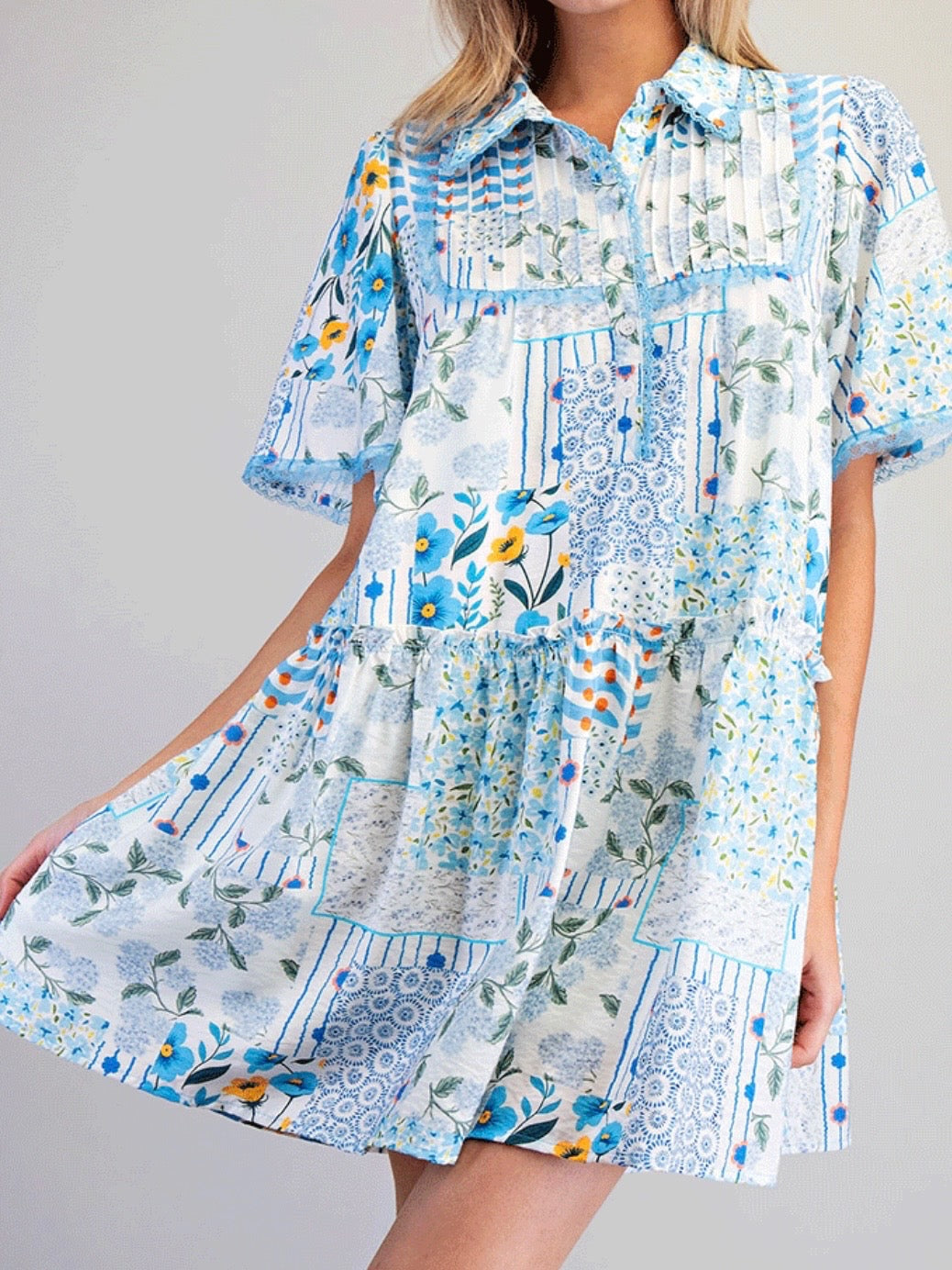 Check out the Patch Perfect dress! This delightful piece features a charming patchwork print that adds flair to any outfit. Its button-down style offers both comfort and sophistication. Perfect for warm days or any occasion, it's a must-have for your wardrobe!