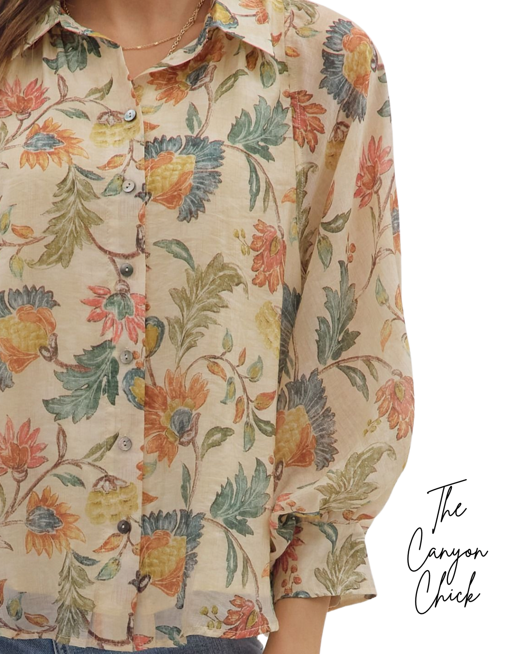 This Posh & Perfect top features a beautiful fall floral print, long sleeves, and a button-down design. With dropped shoulders and buttoned cuffs, it's both stylish and comfortable. Lined for an extra touch of perfection.
