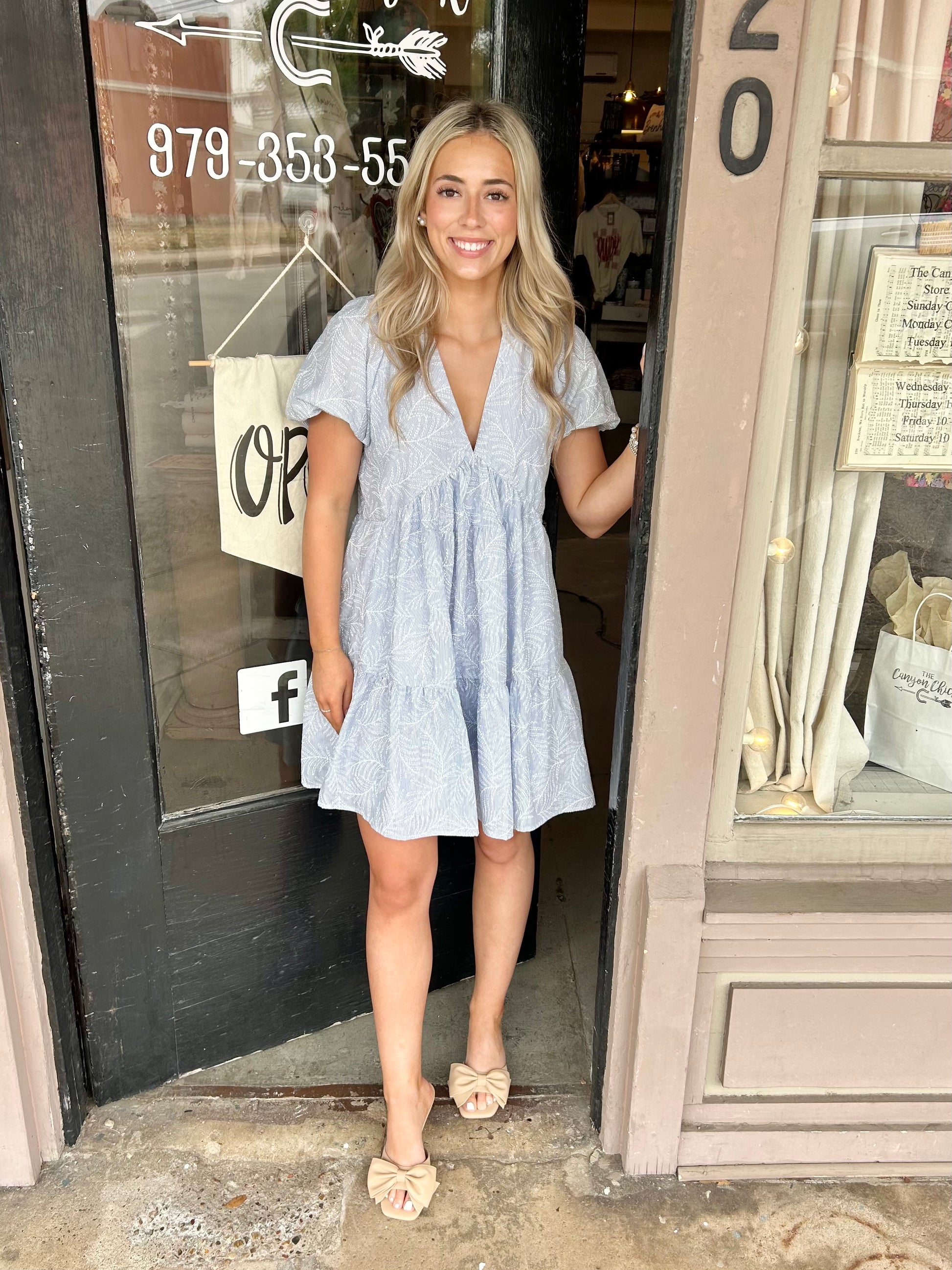 Introducing the Stripe Love dress, an essential for any sunny day. The light blue color and delicate floral and stripe pattern create a fresh, airy feel, ideal for a casual outing or enjoyable afternoon. The flowy silhouette and soft fabric ensure comfort and ease of wear. You will feel effortlessly stylish and ready to brighten anyone’s day!