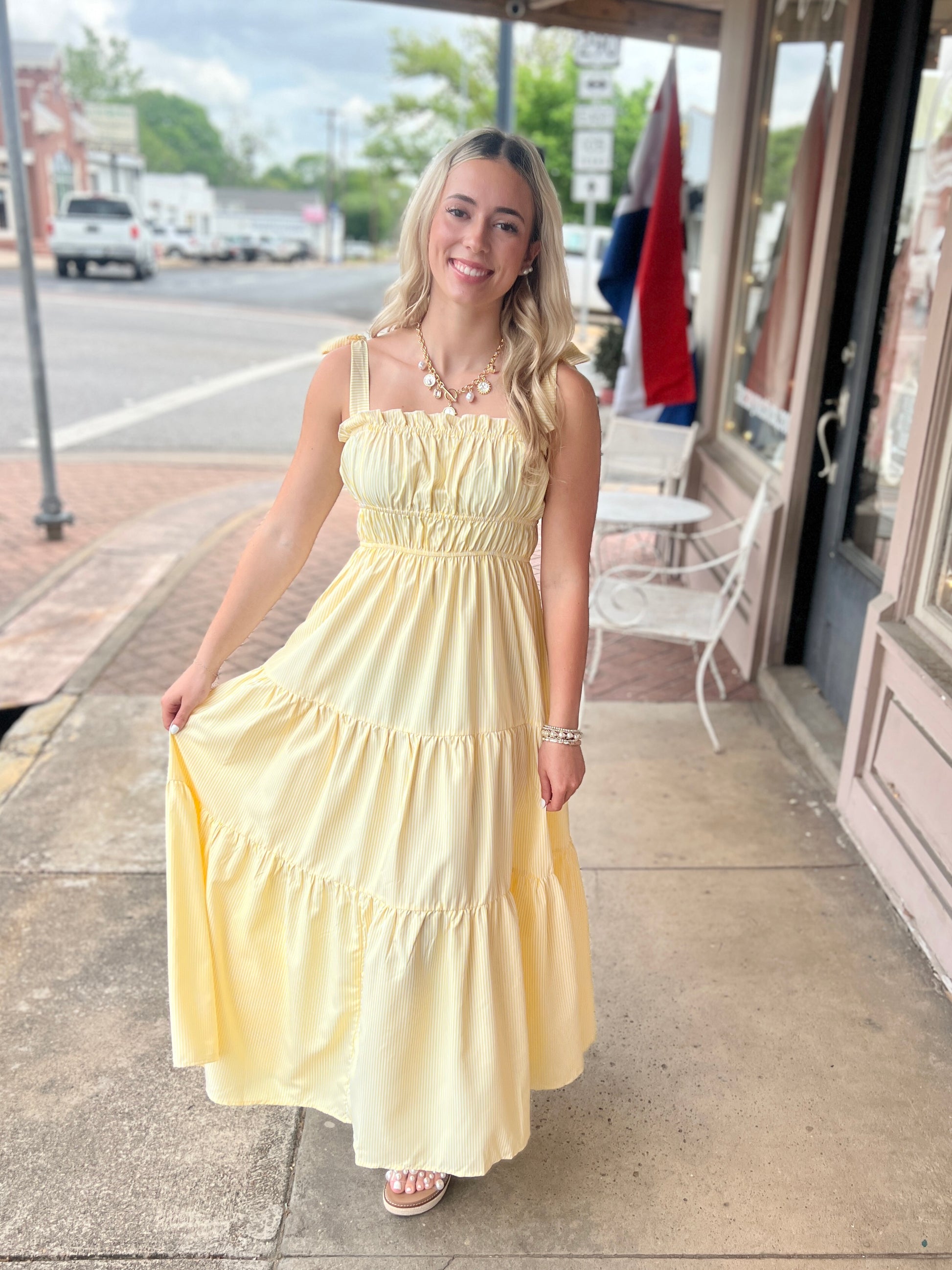 The Striped Summer maxi dress is the perfect addition to your warm-weather wardrobe. Its square neck and sleeveless design offer a chic yet comfortable fit, while the length keeps you cool and stylish. Embrace effortless elegance with this versatile dress that’s ideal for any summer outing!