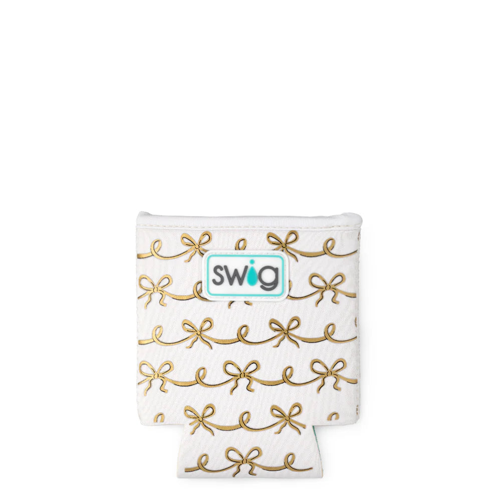 Get wrapped up in these gold metallic bows on a pale ivory background with our Pretty Pearl Can Coolie. Our insulated Coolies stop condensation and keep drinks cold for 2+ hours. With a dedicated credit card pocket, the Can Coolie makes the perfect event partner!