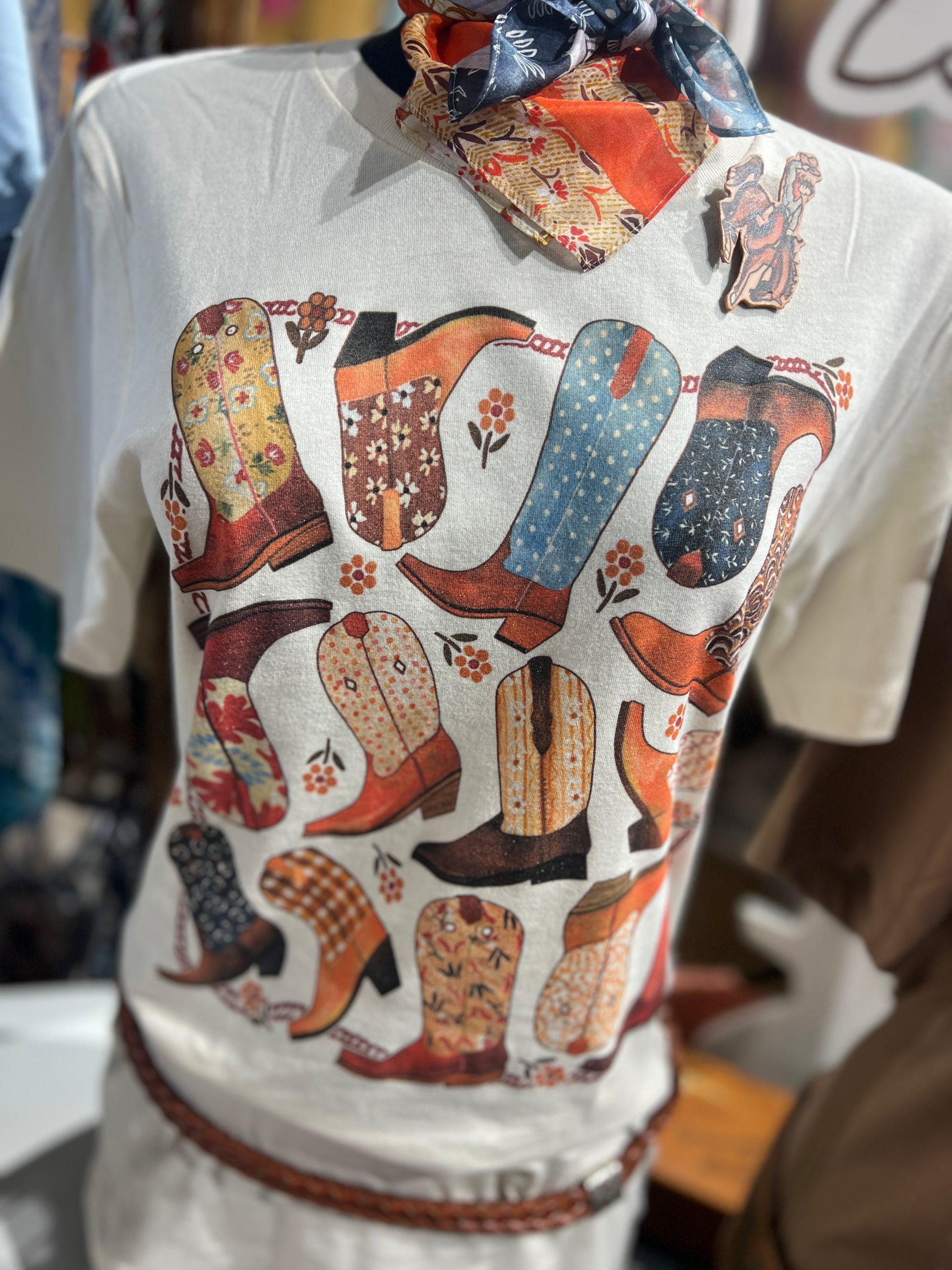 XO Log Cabin Boots Is the cutest tee displaying the colorful collection of cowgirl boots. Add a little western flair to your day in this tee by XOXO Art Co.